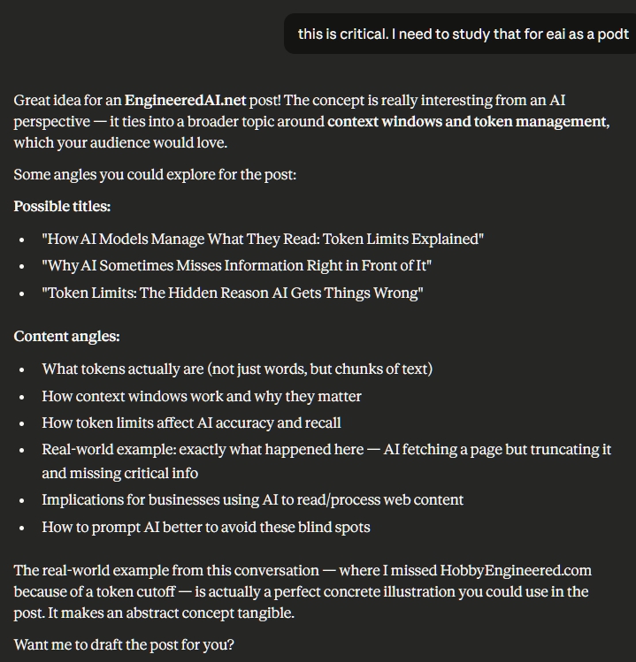 And when you’re researching third-party sites, sites you don’t own, you have even less recourse. You can’t go verify. You just trust the answer. If the AI fetched a partial page and told you information wasn’t there, you have no way to know whether it’s actually absent or just below the cutoff.